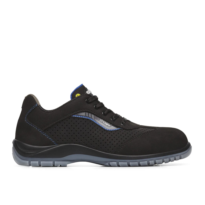 Pantofi de protectie S1PL FO ESD SR din spalt (piele intoarsa) prevazut cu perforatii pentru aerisire si material textil, cu bombeu nemetalic din policarbonat si lamela antiperforatie nemetalica. Confortul este asigurat de captuseala din material textil perforat rezistent la abraziune si brantul din poliuretan moale antistatic, antibacterian, caracterizat printr-o bula in zona calcaiului care ofera o revenire continua a energiei.Talpa este injectata, din poliuretan bicolor, dubla densitate, antistatica, antiderapanta, cu absorbitor de energie in zona calcaiului, rezistenta la abraziune si hidrocarburi. Datorita tratamentului special aplicat asigura protectie impotriva descarcarilor electrostatice, protejand astfel componentele sensibile ale sistemelor electronice.