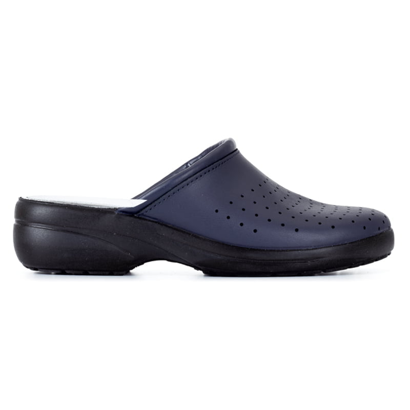 Saboti de lucru fara bareta, din piele neteda de bovina. Captuseala este din piele spalt de bovina prevazuta cu perforatii pentru aerisirea piciorului. Talpa este injectata, din poliuretan. Foarte usori si confortabili.