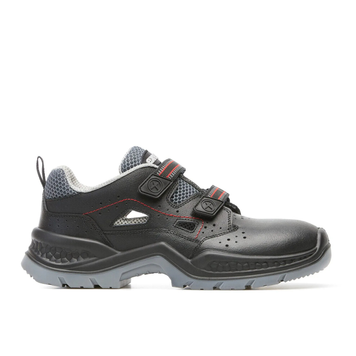 Sandale de protectie S1P SRC din piele neteda de bovina si material textil, cu bombeu nemetalic din material compozit si lamela antiperforatie nemetalica. Asigura un confort ridicat datorita brantului IMPULSE si captuselii din material textil perforat care permite aerisirea piciorului. Talpa este injectata, din poliuretan dubla densitate, cu proprietati antistatice si antiderapante, rezistenta la abraziune si hidrocarburi.